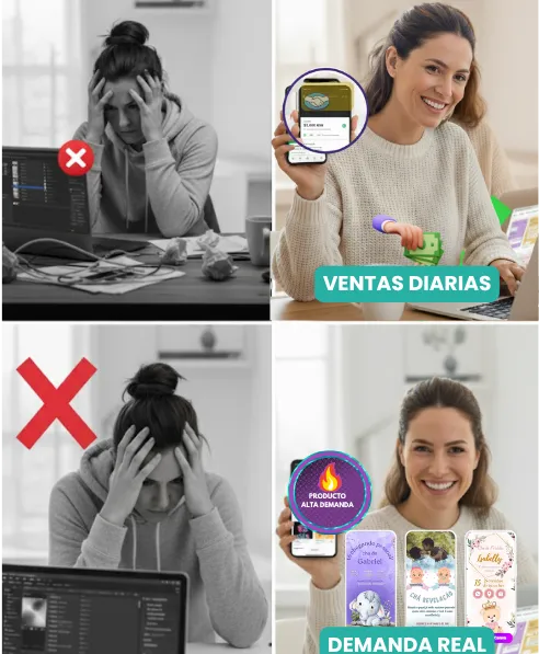 “Nunca había diseñado nada en mi vida, pero con las plantillas fue facilísimo. En una semana ya tenía mis primeras ventas de invitaciones para cumpleaños. Literal, cumpli el sueño de ganar desde casa!”